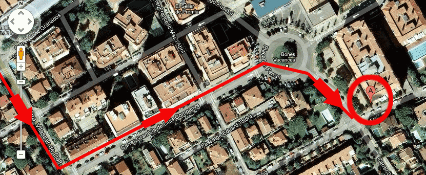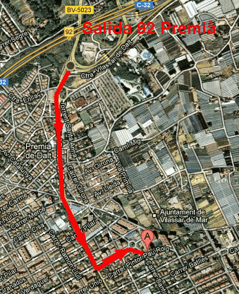 N-II en el Km. 632.4 o por la autopista C-32 salida 92 Vilassar de Dalt-Premià de Mar Giramos por Gran Via dirección a Mataró. Al llegar a la rotonda la primera hacia el mar. Y veremos lo que se muestra en la imagen. |